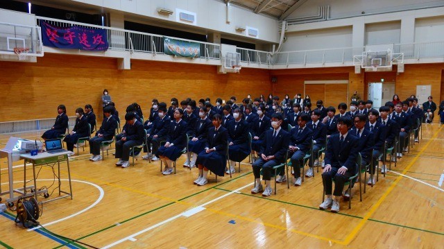 校長先生のお話にもありましたが、3学期の登校日数は52日(3年生は48日)しかありません。新年のスタートでありながら、学校としては「まとめ」の時期でもあります。4月に立てた目標を達成できるようにしっかり努力を継続していきましょう。また、本校では学力向上の取組の一環として国語、数学、英語のコンテストを実施していますが、3回すべて優秀賞(満点)をとった生徒も表彰しました。