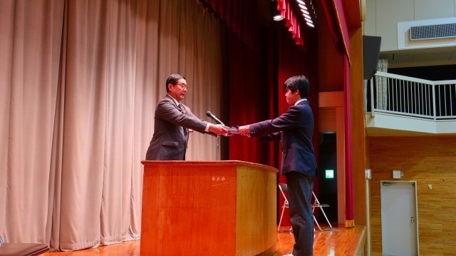 最後に、生徒会長から校長先生に2年生全員分の立志の作文集が手渡されました。