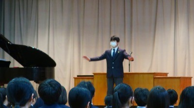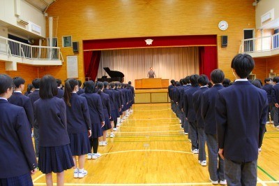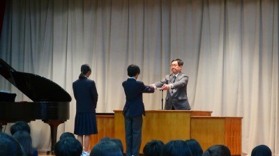 学年の代表生徒に修了証が渡され、最後に校歌斉唱です。