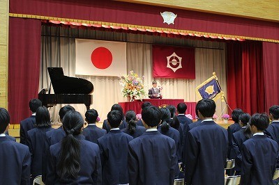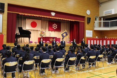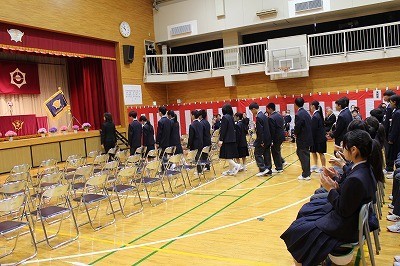 学年の代表生徒に修了証が渡され、最後に校歌斉唱です。