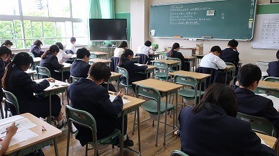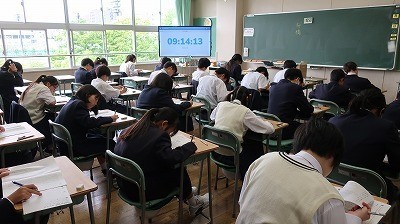 1,2年生は5教科、3年生は全国学力調査で実施されない社会と理科の2科目の調査が行われました。