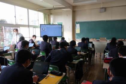 2年生は道徳の授業で、一人一台タブレットをフル活用。