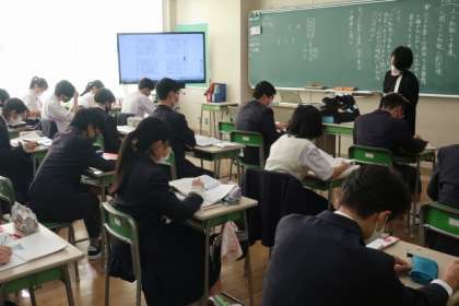 明日から期末考査、それぞれの授業に集中して取り組んでました。国語ではタブレットPCを使って意見を集約したり、意見交換を行ったりしていました。校庭の木の葉もすっかり色づき、気温が下がっていますので、まずは体調管理、そして万全の準備をしてテストに臨みましょう!