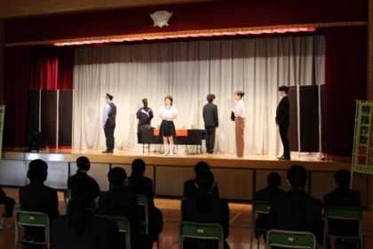 2年生が薬物乱用防止教室を実施しました。薬物に手を出してしまうとどうなるか、また、詐欺などの犯罪に巻き込まれてしまう危険性等についてプロの劇団の方々の劇を見ながら学びました。甘い言葉、軽い気持ちで・・・今日、学んだことをいかしてトラブルに巻き込まれないよう十分注意したいですね。