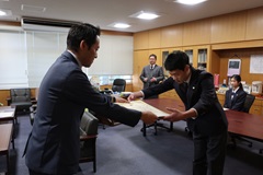 2日(月)、『税の標語』表彰式が本校の校長室にて実施されました。以前にもブログにて3名の入選者の紹介をさせていただきましたが、以下が3名の生徒の標語になります。