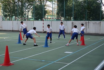 保健体育の授業は、スカイツリーに見守られる中、校庭で実施されました。生徒はハンドボールの練習を一生懸命していました。英語の授業は、ALTのモーリーン先生とともに『Peter Rabbit』を勉強していました。モーリーン先生のスピーチを真剣に聴いていました。理科の授業は、ICT機器を使用し、『電気分解』の説明をしていました。生徒は真剣に聴いていた姿が印象的でした。