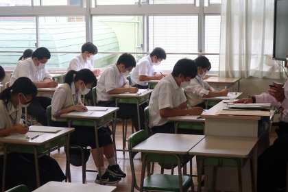 1日目は英語、技術・家庭科、音楽のテストを実施しました。テストに臨む真剣な姿勢から意気込みが伝わってきます。蒸し暑い日が続きますが、明日、明後日も頑張りましょう!