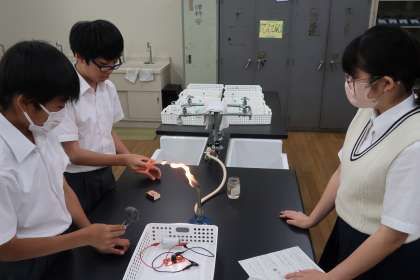 鉄を燃やしたことによる質量や性質の変化についての実験をしました。実験で起こった変化について自分の体の動きを使って、分かりやすく表現する生徒もいました。見通しをもって、友達と協力しながら学び合うことができ、素晴らしかったです。