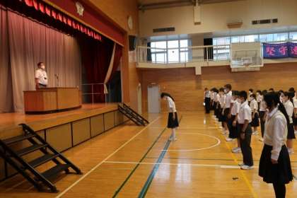 終業式を実施しました。日々の学習、京都・奈良への修学旅行、霧ヶ峰移動教室、運動会などの各行事、生徒会活動、部活動等々、充実した1学期が終了しました。先週行われた漢字コンテストで最優秀、優秀賞をとった生徒の表彰も行いました。多くの生徒が努力の成果出たようで、素晴らしいですね。明日から夏休み、安全に、健康管理をして、計画的に過ごしましょう!
