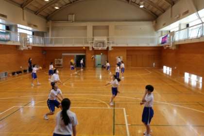 体育館では男子のバレーボール。一緒にパスをすると久しぶりに血が騒ぐ?感じです。