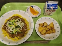 ・ミートソーススパゲッティー・フライドポテト入りサラダ・津の輝き(オレンジ)・牛...