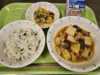 ・わかめご飯・鶏肉と大豆のうま煮・野菜のピリ辛和え・牛乳エネルギー 761kca...