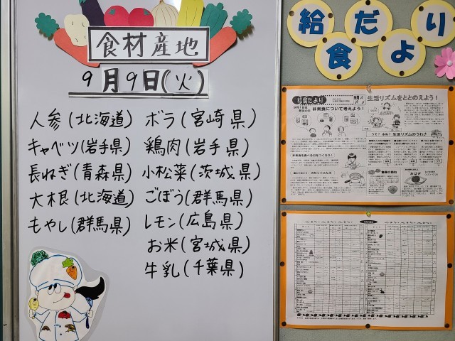 9月9日(火) 今日の給食