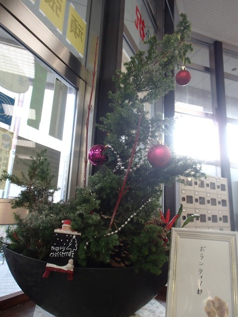 ボラ部の1年生がクリスマスをテーマにフラワーアレンジメントの製作を行いました。それぞれの個性あふれる素敵な作品です。生徒玄関・2階電子黒板隣に飾られています。学校にお越しの際は、是非ご覧になってください。