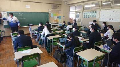 3年生の教室です。都立入試の日とあって空席が目立ちますね。