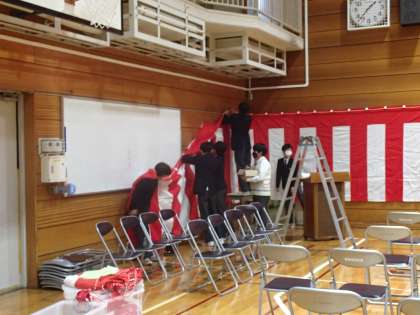 お天気が心配ですが、3年生が願いを込めてつくった3階オープンスペースのてるてる坊主が何とかしてくれると信じて…。