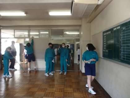 写真は1年生の大掃除の様子です。4月に新入生を迎える教室を、心を込めてピカピカにしました。
