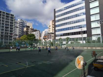 ソフトテニス部も、先日の都大会で3年生が引退し、2年生が1年生を指導しながらチーム力向上目指し、日々練習です。今朝、この第1校庭で「ラジオ体操」をしましたが、暑さ(熱中症予防)対策もあり、朝早い時間から短時間での練習に取り組んでいます。