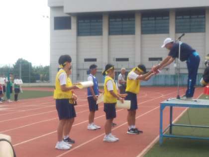 各学級体育委員に、校長先生から賞状ならびにトロフィーが授与されました。