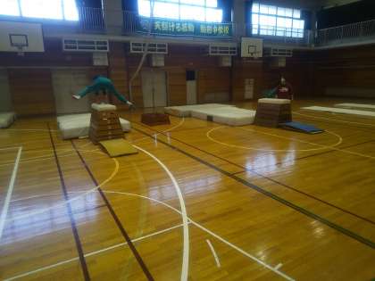2年生女子保健体育(体育分野)、ティームティ—チングで跳び箱・マット運動です。