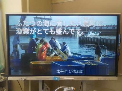 毎日、栄養士さんがディスプレイに今日の献立について説明したスライドを準備していますが、今回も、北海道八雲町についての紹介を作成してくださいました。