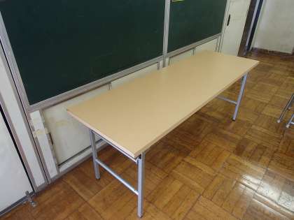 特に、少人数教室を授業の教室としているグループのために、職員室前には、専用の白衣が準備されています。また、配膳台の代わりとなる長テーブルを、職員が各教室に運び入れ、配膳時体制を整えています。