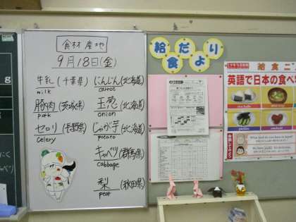 9月18日(金) 今日の給食・食材産地