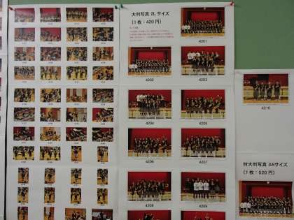 1階の音楽室前に、10月に実施した吹奏楽部のミニ演奏会の写真が掲示されています。