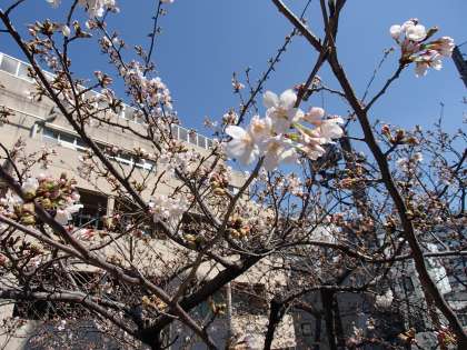 校庭脇の桜もだいぶ咲いてきました。4月がもう近いのですね。