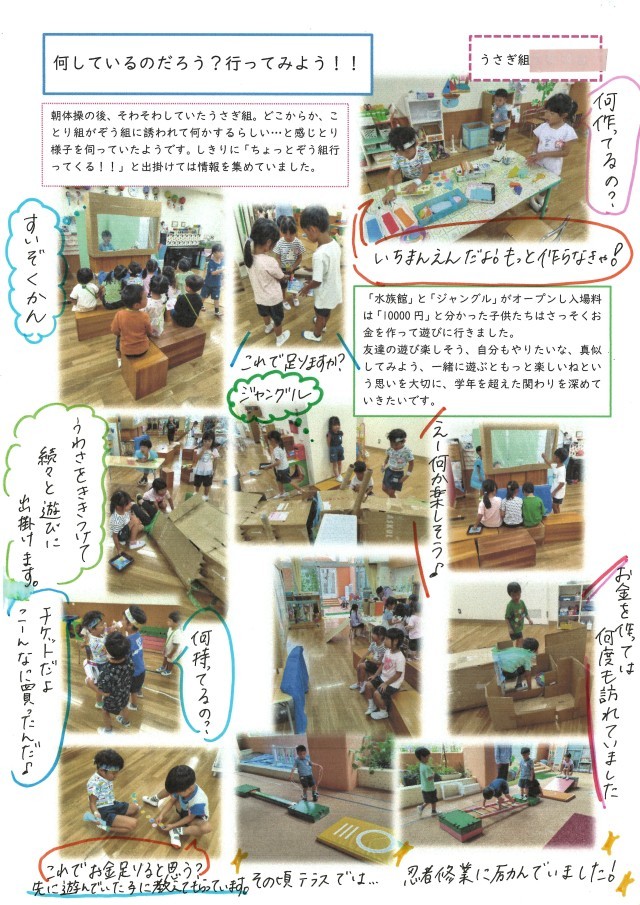 「水族館」と「ジャングル」がオープンし、入場料は1,000円と分かった子供たちはさっそくお金を作って遊びに行きました。