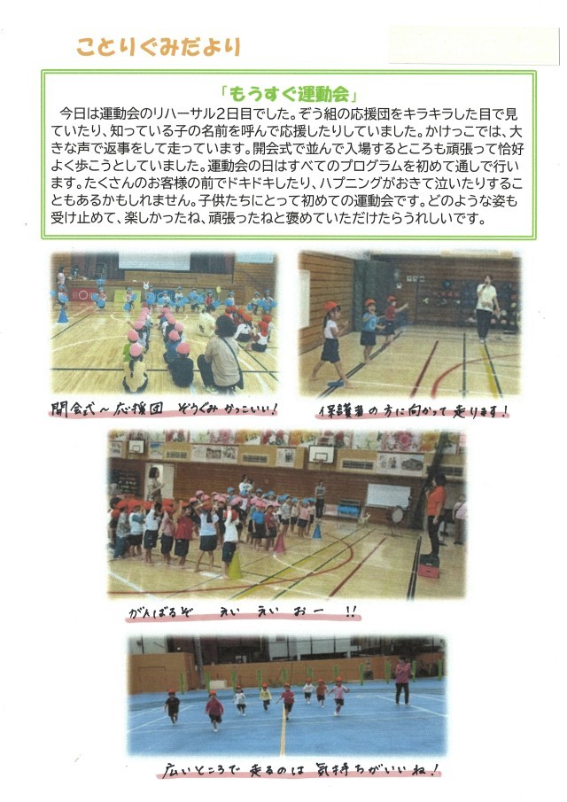 どのような姿も受け止めて、楽しかったね、頑張ったねと褒めていただけたらうれしいです。