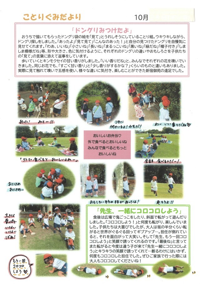 実際に見て触れて嗅いで五感を使い、様々な違いに気付き、楽しむことができた新宿御苑の遠足でした。