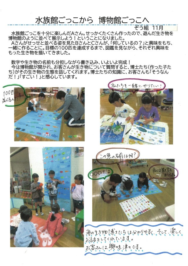 今は博物館が開かれ、お客さんが生き物について質問すると、博士たち(作った子供たち)がそれぞれの生き物の生態を話してくれます。