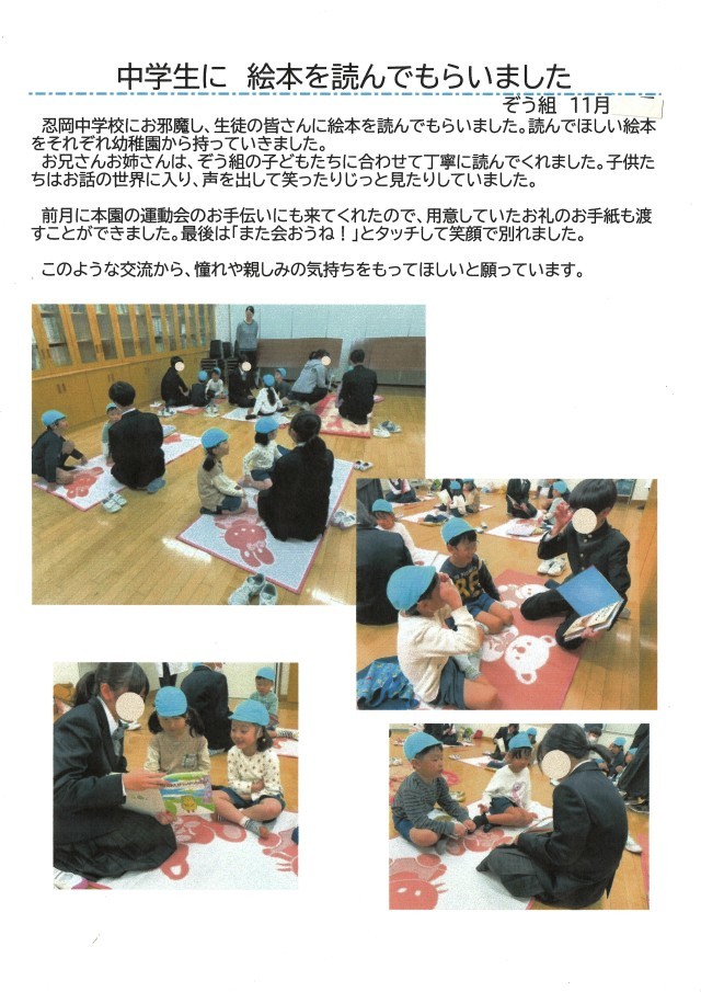 お兄さんお姉さんは、ぞう組の子供たちに合わせて丁寧に読んでくれました。