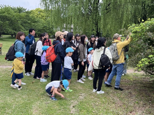 子供たちも一緒に公園内を歩くうちに「隊長 虫を見つけました」「隊長 これは何ですか」と次第に探検隊の一員になっていました。