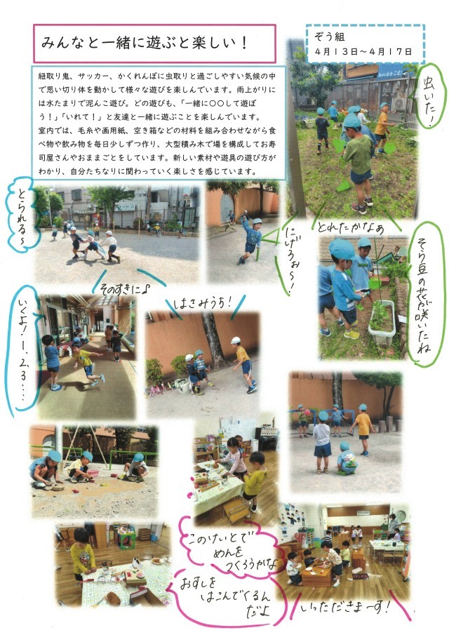 どの遊びも友達同士で発見したことや、できたこと等発信し合えることで友達とのつながりを感じられるようになっています。