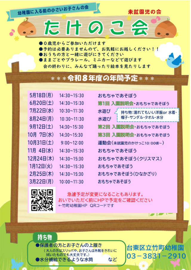 令和8年度 たけのこ会(未就園児の会)のお知らせ