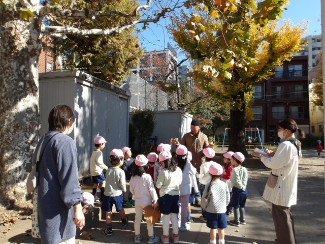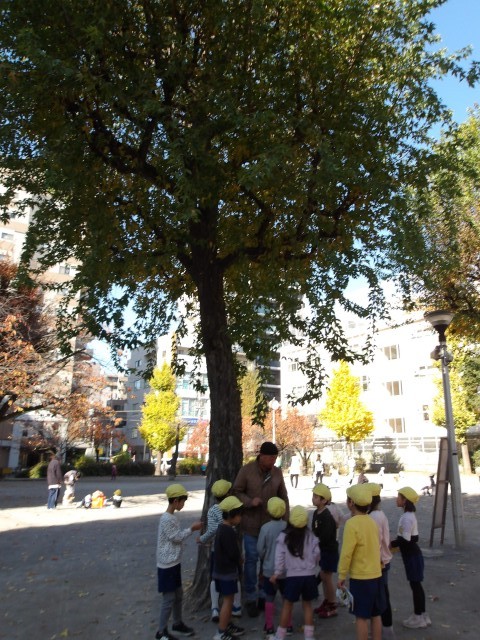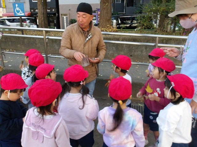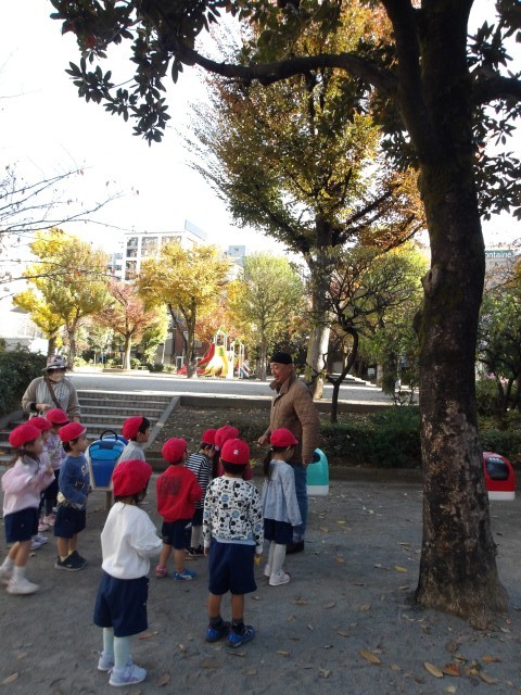 竹町公園には、ケヤキ、トウカエデ、タイサンボク、カキ、イチョウ、サクラ、プラタナスなどなど…、たくさんの木々があることを教えてくれました。落ち葉の色づきが様々で、秋を感じました。