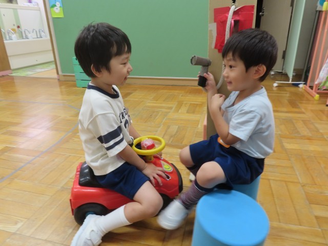 2学期になり、年少組でも言葉数が増えて、友達と関わって遊ぶ姿が見られるようになってきました。