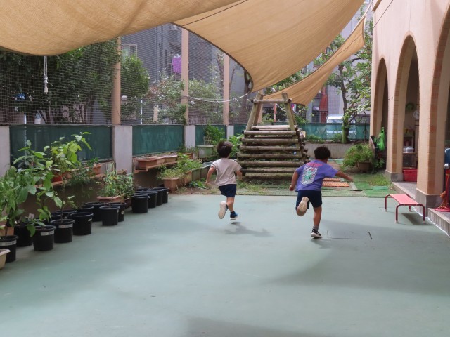 夏休みには、ご家庭で過ごすことが多かった子供たちも、幼稚園の広いスペースで友達と駆けまわったり、思い切り体を動かしたりすることを楽しんでいます。