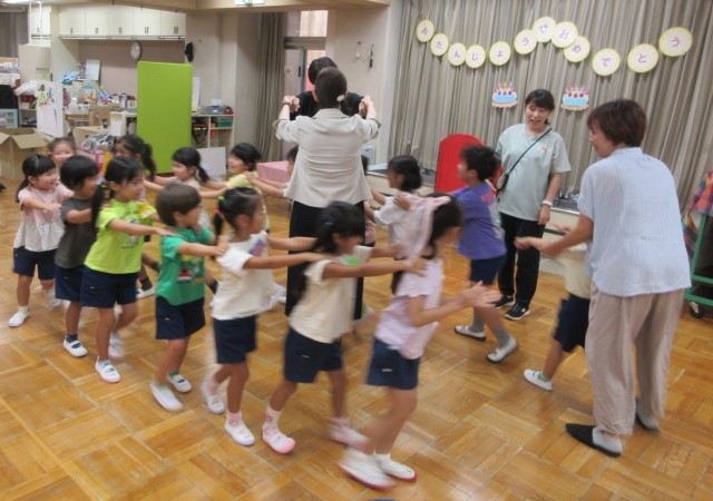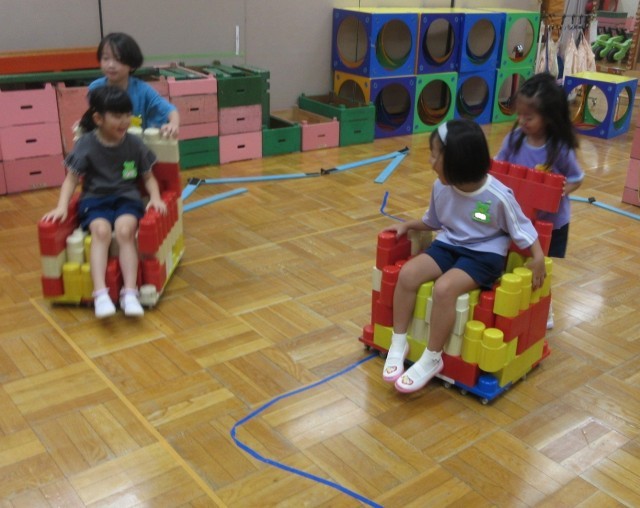 ぞう組で乗り物やお化け屋敷などができると、ぱんだ組の子供たちを招待してくれます。ぱんだ組の子供たちは喜んで何度も遊んでもらっていました。