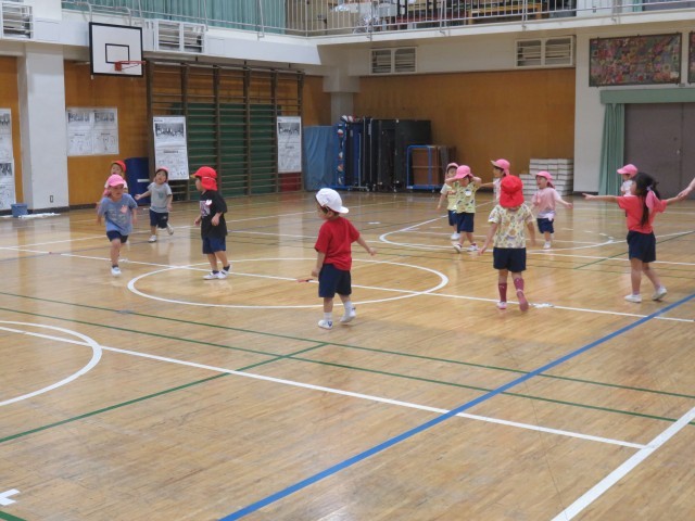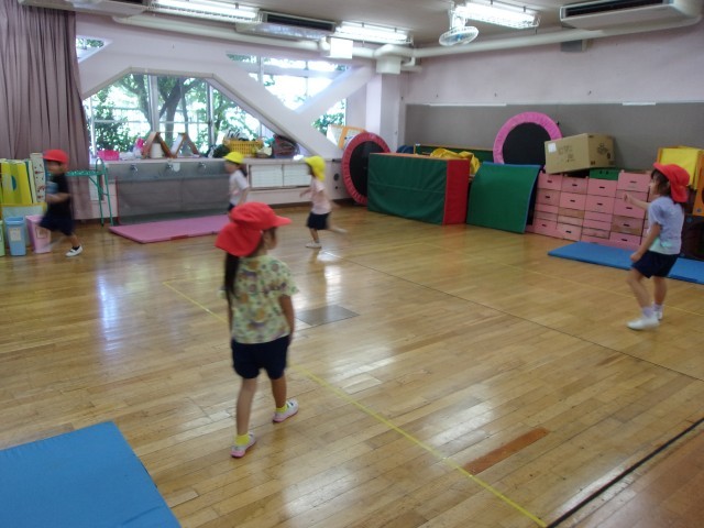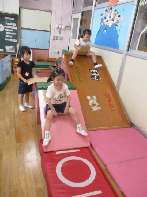 段ボールのそり遊びや年長月組と助け鬼、年少雪組とむっくりくまさんの鬼ごっこでたくさん体を動かして遊びました。