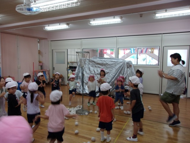 雪組ははじめての玉入れ。