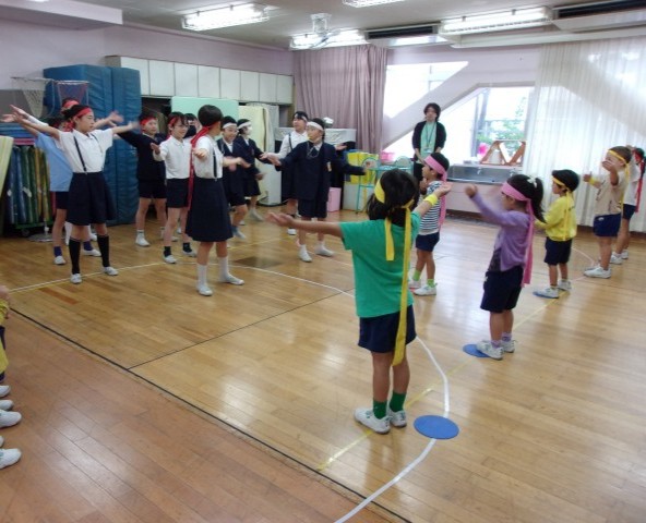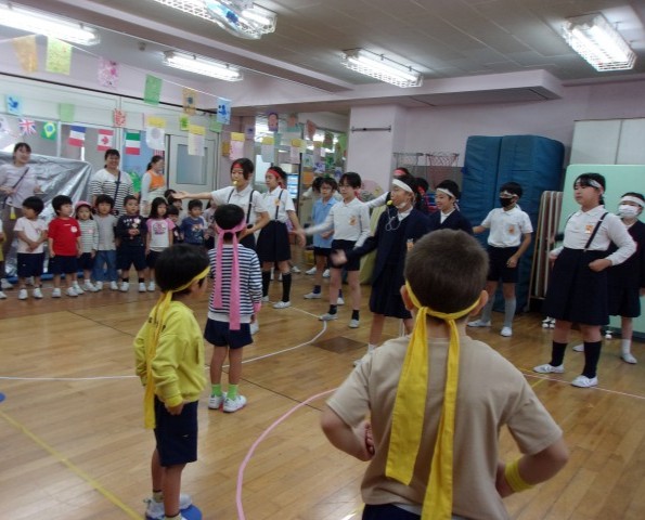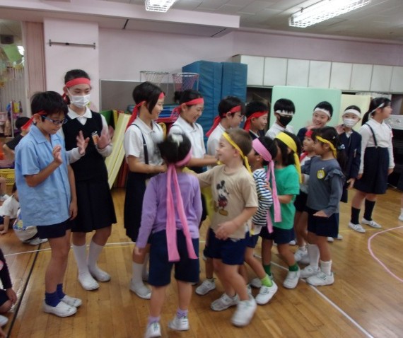 今日は5年生のお兄さん、お姉さんに月組応援団の姿を見てもらいました。