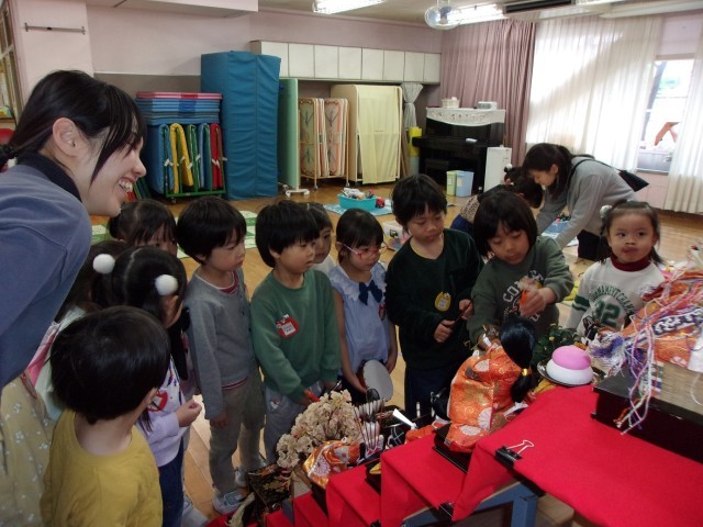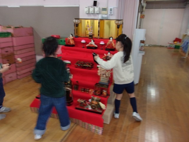 飾り終わると、雪組や花組の子供たちも見に来て、お雛様をじっと見つめる様子もありました。