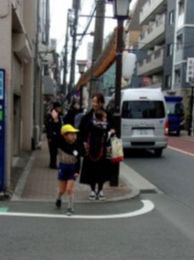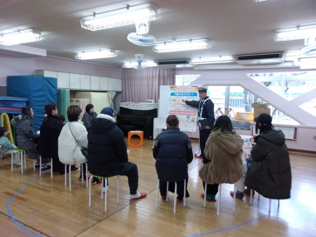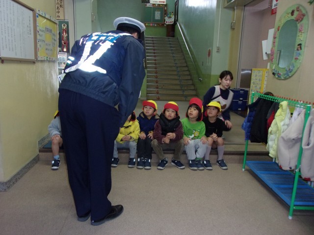 年長月組は1年生に向けて、実際に道路を歩く実地訓練を行いました。