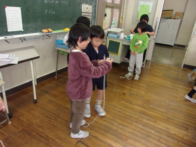 食後の昼休みもコマ回しなどいっしょに遊んでもらいました。