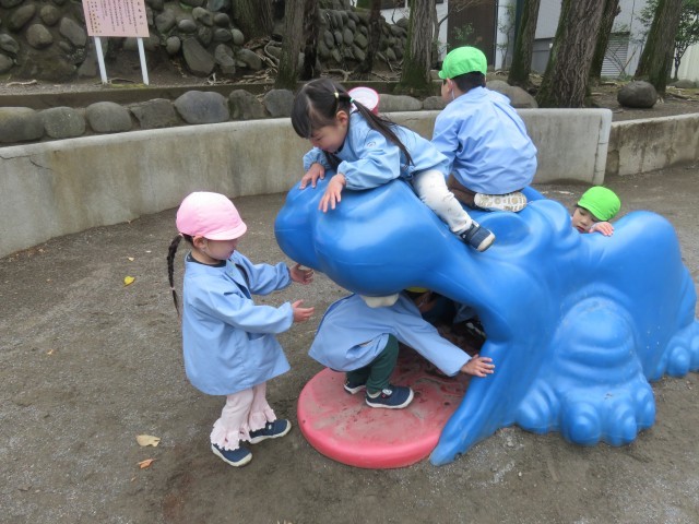 おいしい匂いの人形焼きをみんなでお買い物して、おいしく食べ、公園で思いきり遊びました。
