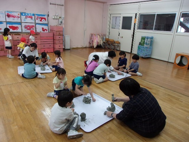 粘土の冷たさや感触を楽しみながら作りました。