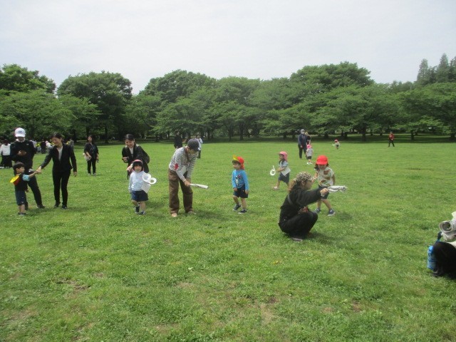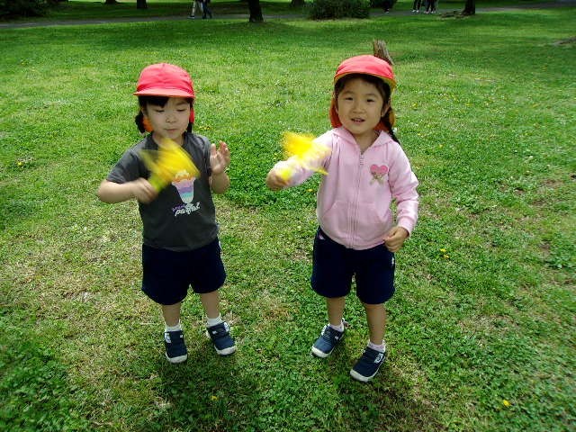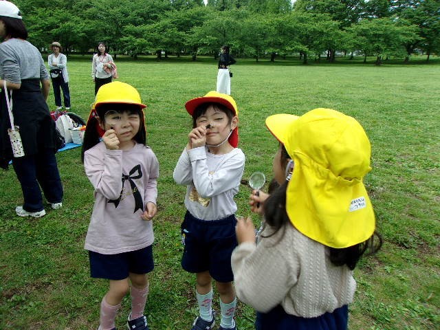 雪組さんは風車、花組さんはシャボン玉、月組さんは虫眼鏡、お弁当の後も手に持って楽しみました。
